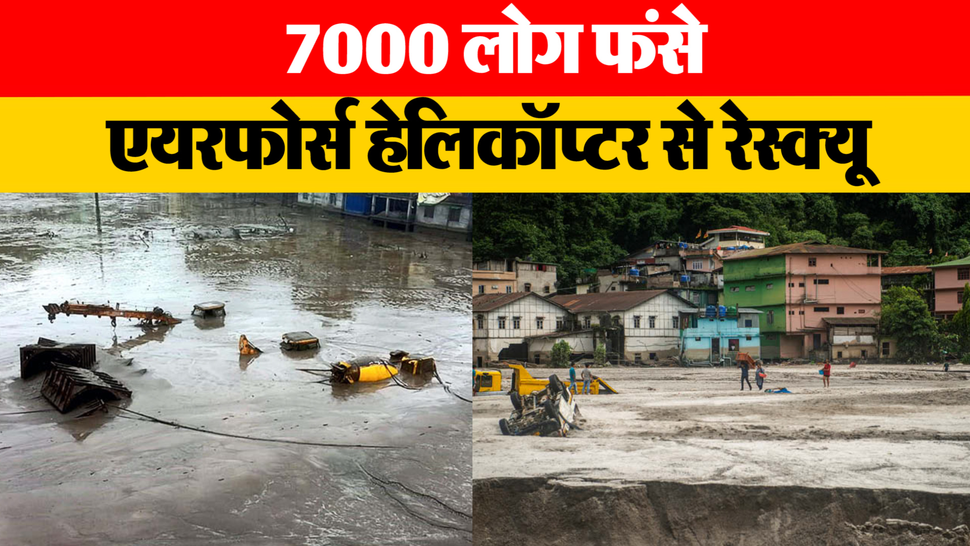 7000 लोग फंसे एयरफोर्स हेलिकॉप्टर से रेस्क्यू सिक्किम में 3 अक्टूबर को बादल फटने के