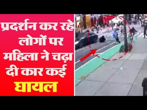 अमेरिका के न्यूयॉर्क में एक महिला कार चालक ने प्रदर्शन कर रहे लोगों पर अपनी गाड़ी चढ़ा