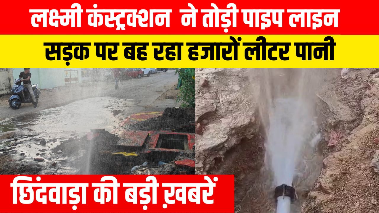 लक्ष्मी कंस्ट्रक्शन ने तोड़ी पाइप लाइन सड़क पर बह रहा हजारों लीटर पानी दोस्त ने रखा