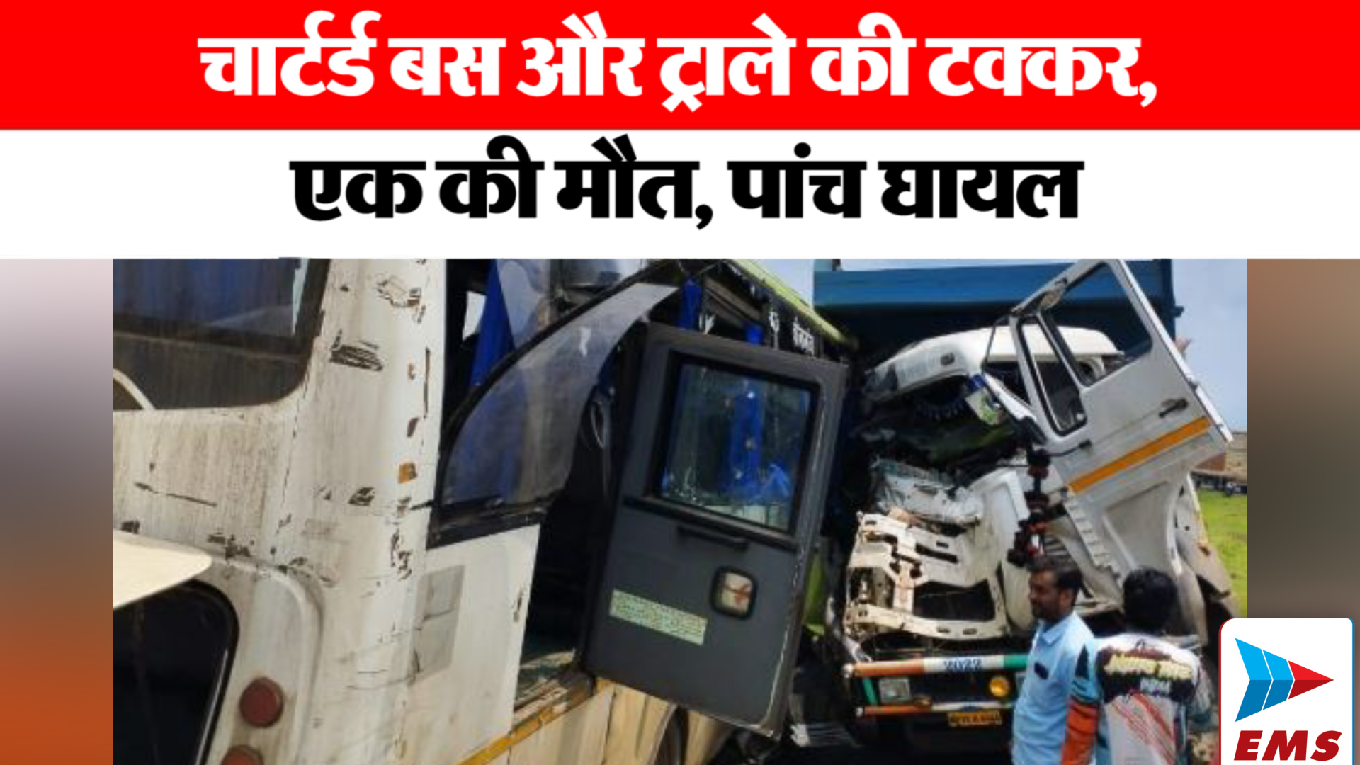 खरगोन चार्टर्ड यात्री बस और ट्राले के आमने सामने भीषण टक्कर में एक की मौत पांच लोग घायल