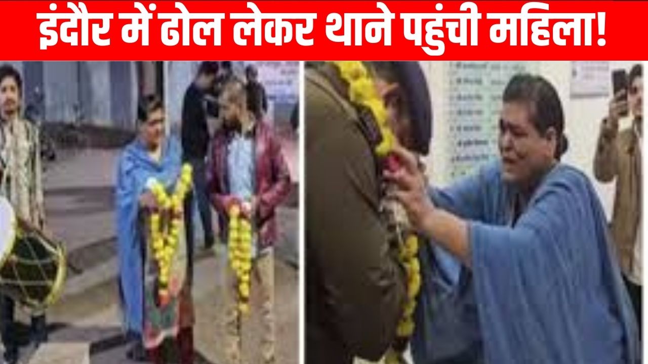 MP के इंदौर में गुरुवार रात खजराना थाने में एक महिला परवीन अपने परिवार के साथ ढोल बजाते