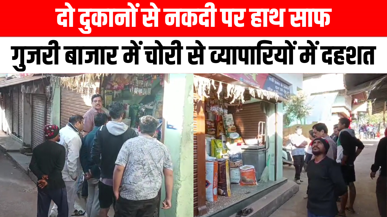 शहर के व्यस्ततम क्षेत्र गुजरी बाजार में रविवार रात अज्ञात चोरों ने दो अनाज दुकानों