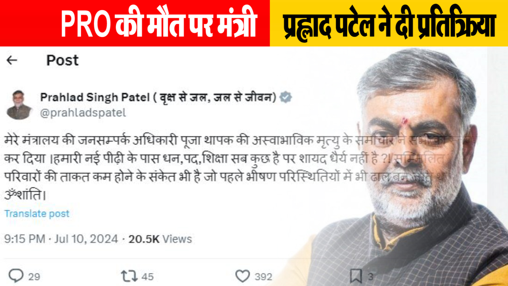 पंचायत एवं ग्रामीण विकास मंत्री प्रह्लाद पटेल की जनसंपर्क अधिकारी पूजा थापक ने सुसाइड