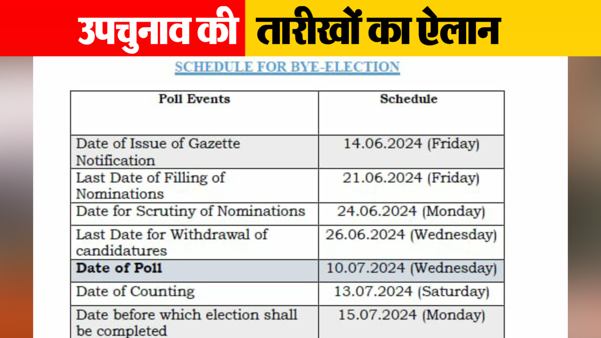 विधानसभा की रिक्त हुई सीटों को लेकर निर्वाचन आयोग ने चुनाव का ऐलान कर दिया है । भारत