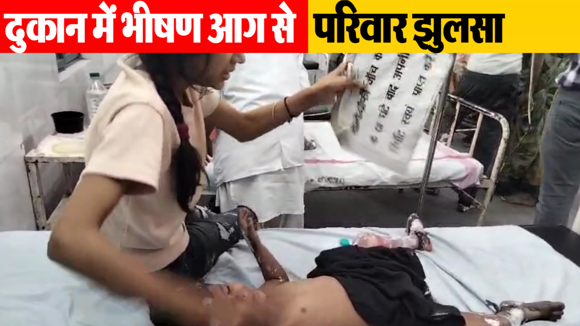 जूता चप्पल दुकान में आग लगने से दूकान के ऊपर रहवासी घर पर परिवार के चार लोग आग से बुरी