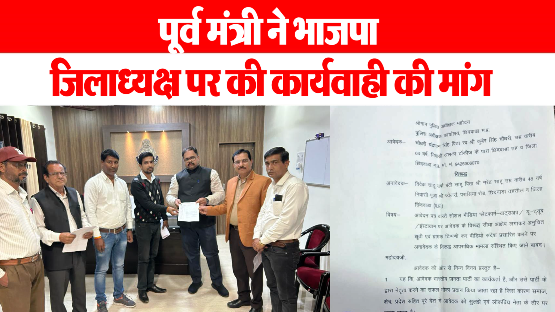 1. पूर्व मंत्री ने भाजपा जिलाध्यक्ष पर की कार्यवाही की मांग पिछले दिनों सोशल मीडिया