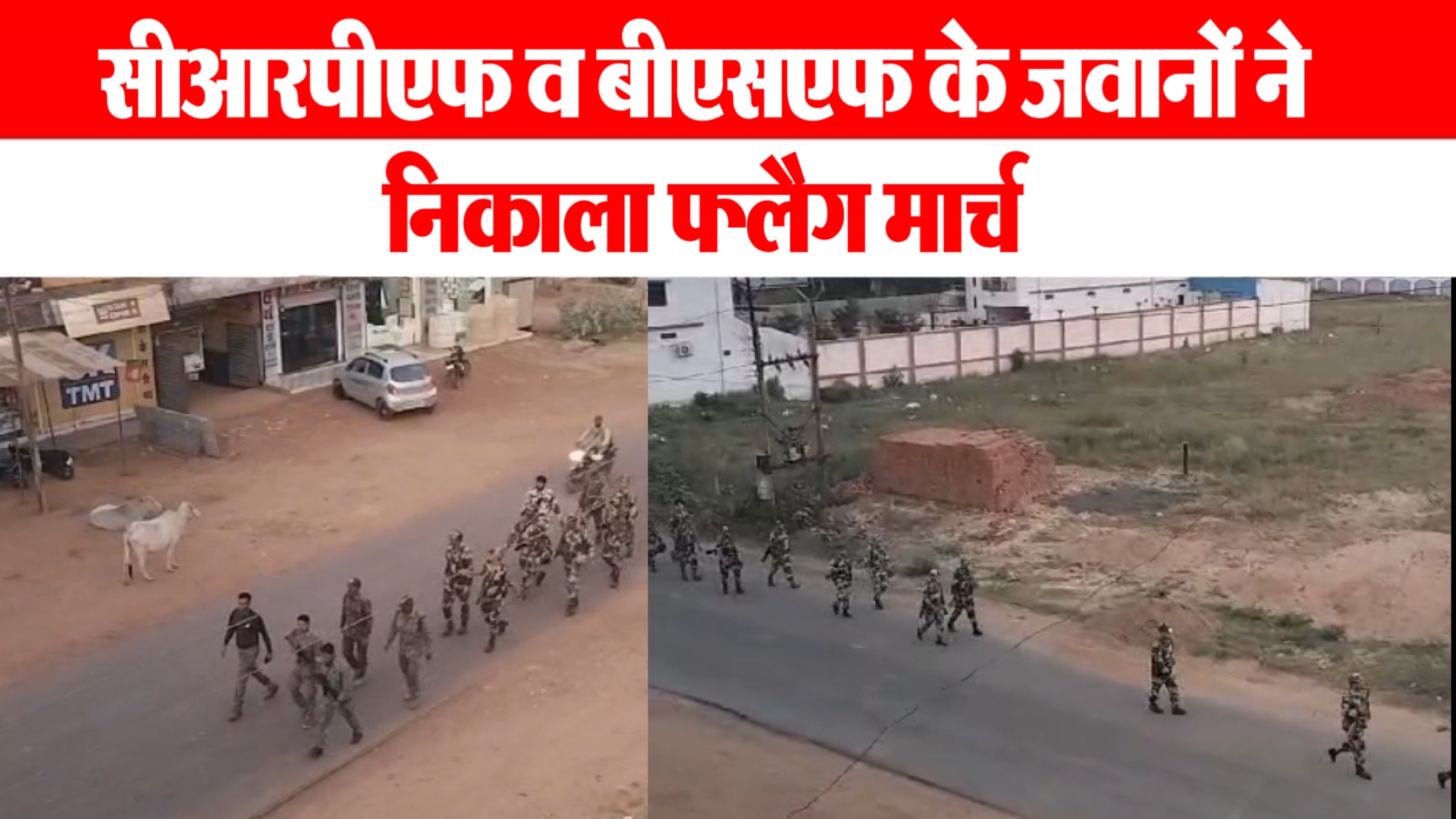 सीआरपीएफ व बीएसएफ के जवानों ने निकाला फ्लैग मार्च प्लास्टिक की पन्नियों एवं मटकों