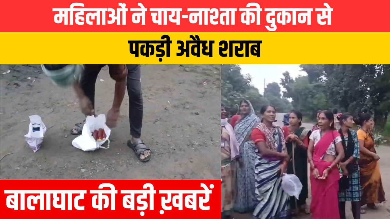 बालाघाट के गोंगलई मंडी में चाय-नाश्ता की दुकान पर नशा मुक्ति समिति की महिलाओं ने अवैध
