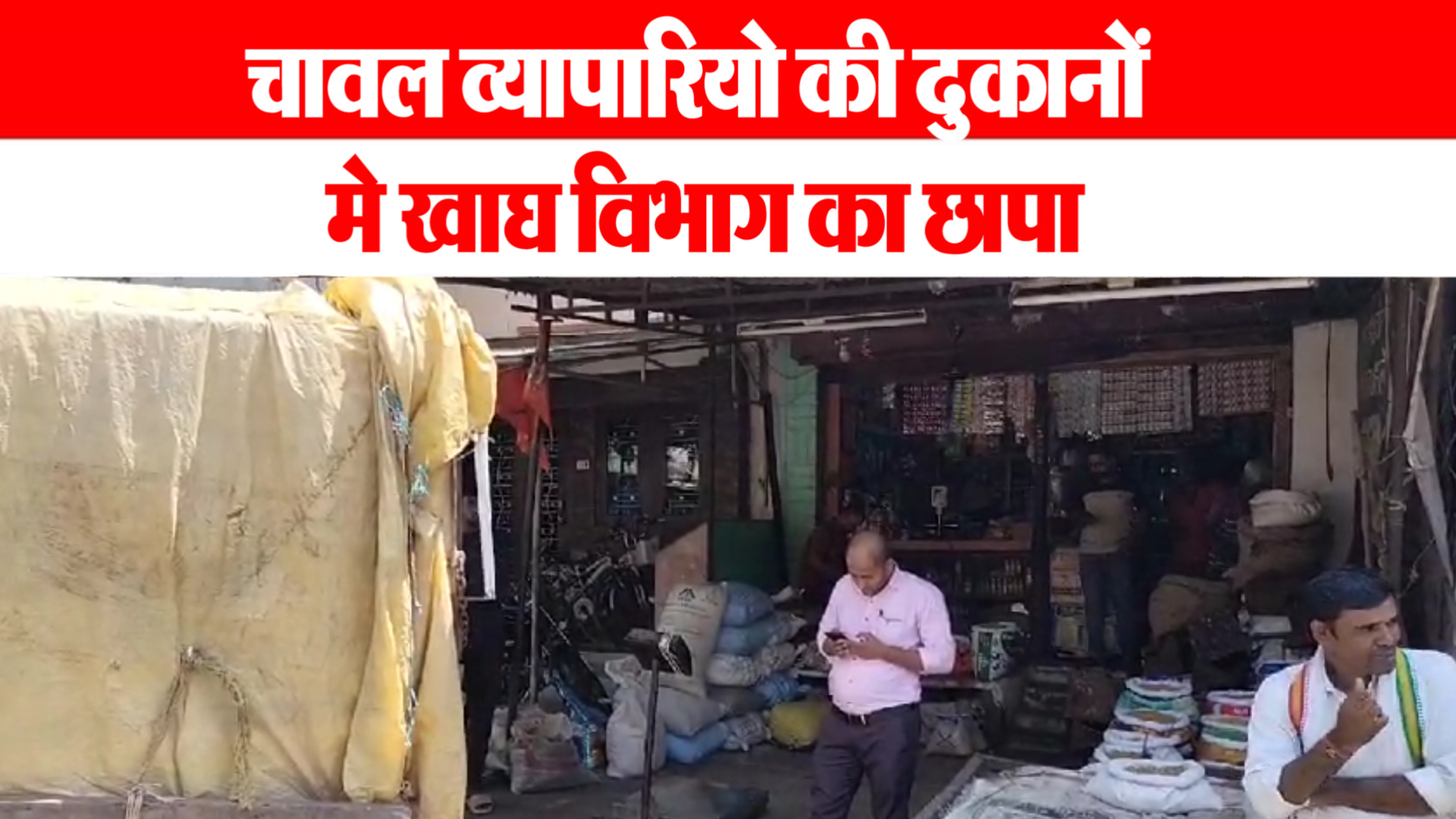 चावल व्यापारियो की दुकानो मे खाघ विभाग का छापा१०० क्विटंल शासकीय चावल जप्त मॉयल में