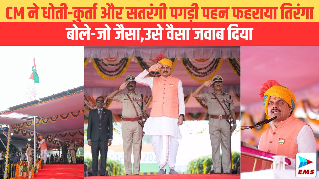 CM ने धोती-कुर्ता और सतरंगी पगड़ी पहन फहराया तिरंगा बोले-जो जैसाउसे वैसा जवाब दिया