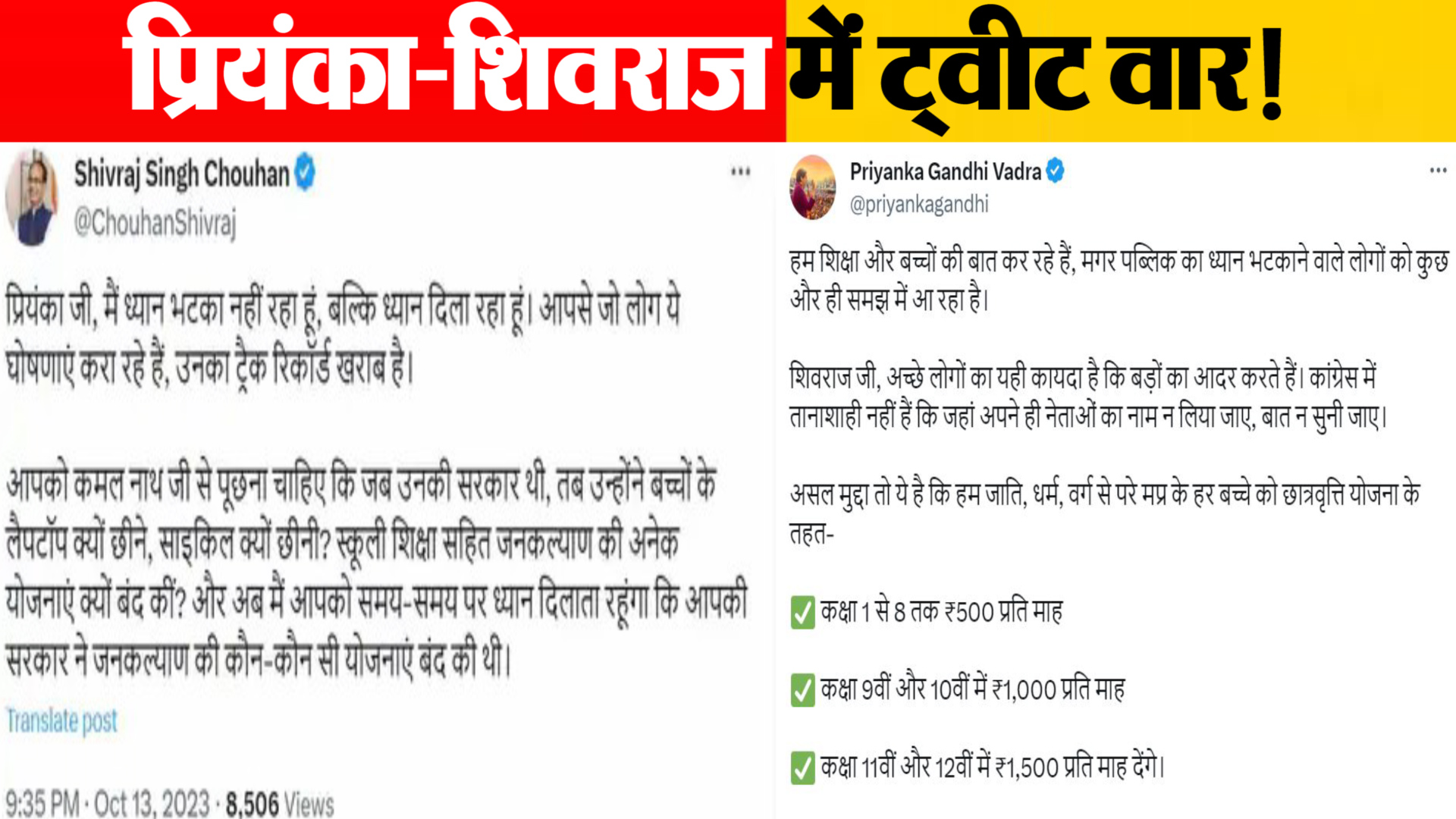 प्रियंका-शिवराज में ट्वीट वार! जो घोषणाएं करा रहे उनका ट्रैक रिकॉर्ड खराब मध्यप्रदेश