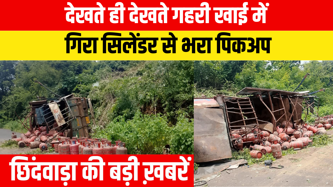 देखते ही देखते गहरी खाई में गिरा सिलेंडर से भरा पिकअप महिला ने भाजपा नेता पर लगाया अश्लील